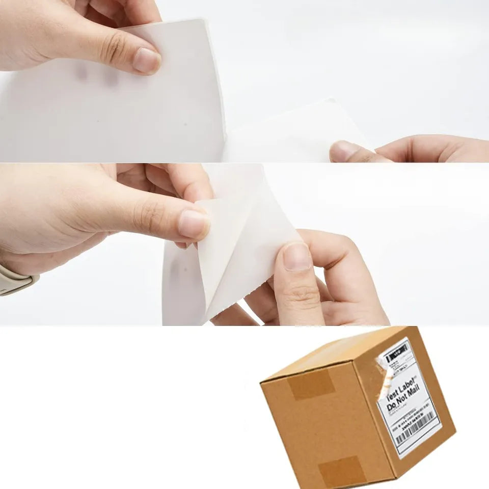 Etiquetas listas para envíos de alto volumen: despegue rápido, adhesión fuerte y impresión nítida para direcciones y códigos de barras.